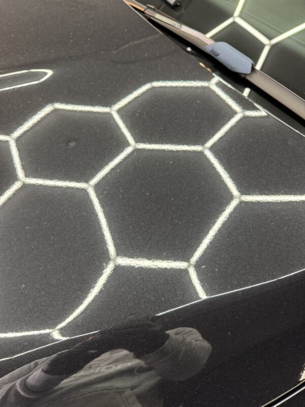 トラップ粘土で鉄粉処理が終わりボディ全体の下地処理が完了しましたら、マスキングしてポリッシングの工程へ移ります。