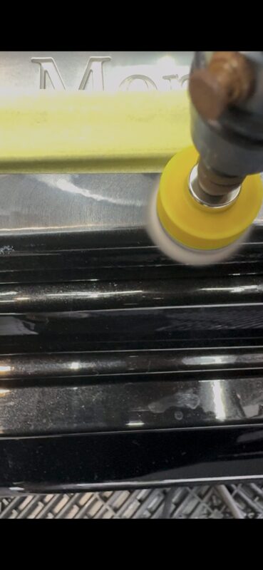 メタルモール周辺は特に深傷が見受けられたのでミニポリッシャーと粗目のコンパウンドでスポットカットしバフなど組み合わせを変えて徐々に細かく塗装面を均一にしていきます。