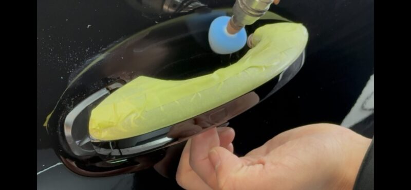アウターハンドル下は入念にハンドポリッシャーを滑らせ重研磨していきます