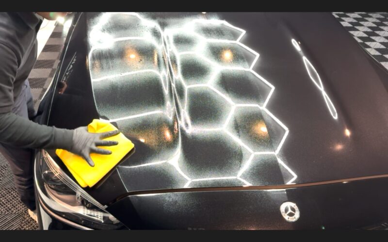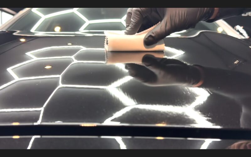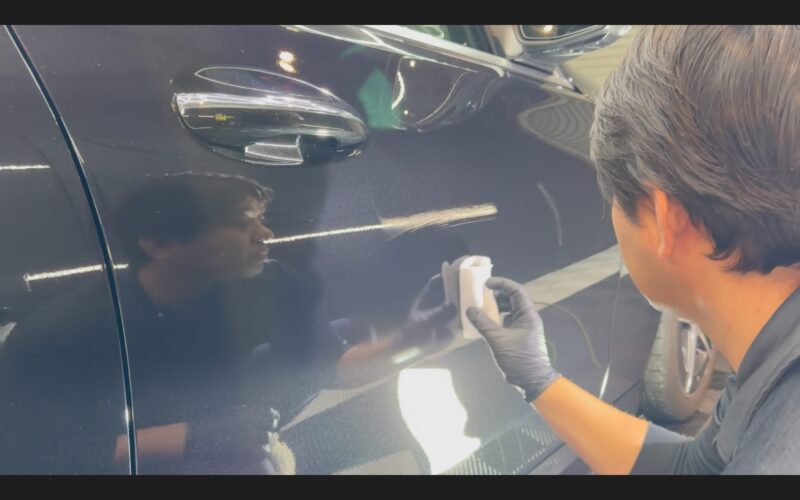 拭き残しや微細なムラなどがないか徹底的にチェックと仕上げを行いながら進めていきます。サーブフェイスコートアルティマセラミックコーティングは一度硬化すると磨き以外では除去出来ないほど強固なコーティング被膜を形成します。