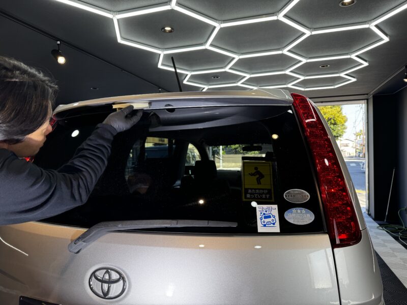 ドアバイザー部も同時に復元していきます。作業風景は割愛させて頂きますが、ドアバイザーの様なアクリル製樹脂も正しい手順を行うと復元可能でございます。
