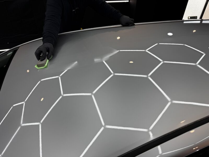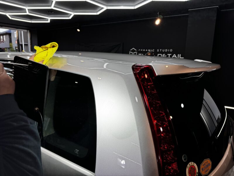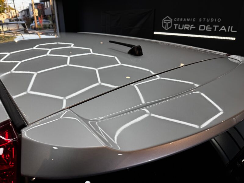 ボンネット同様ルーフ部分全体にミストの確認が取れます。背の高いお車など直視できない場所ほどターフディテイルクオリティで1つ1つ下地を整えていきます。